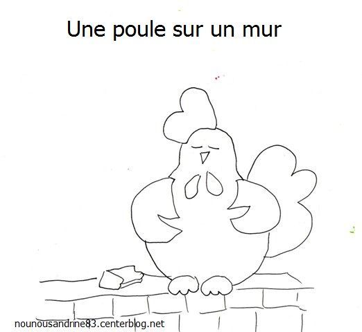 gabarit : une poule sur un mur : coloriage